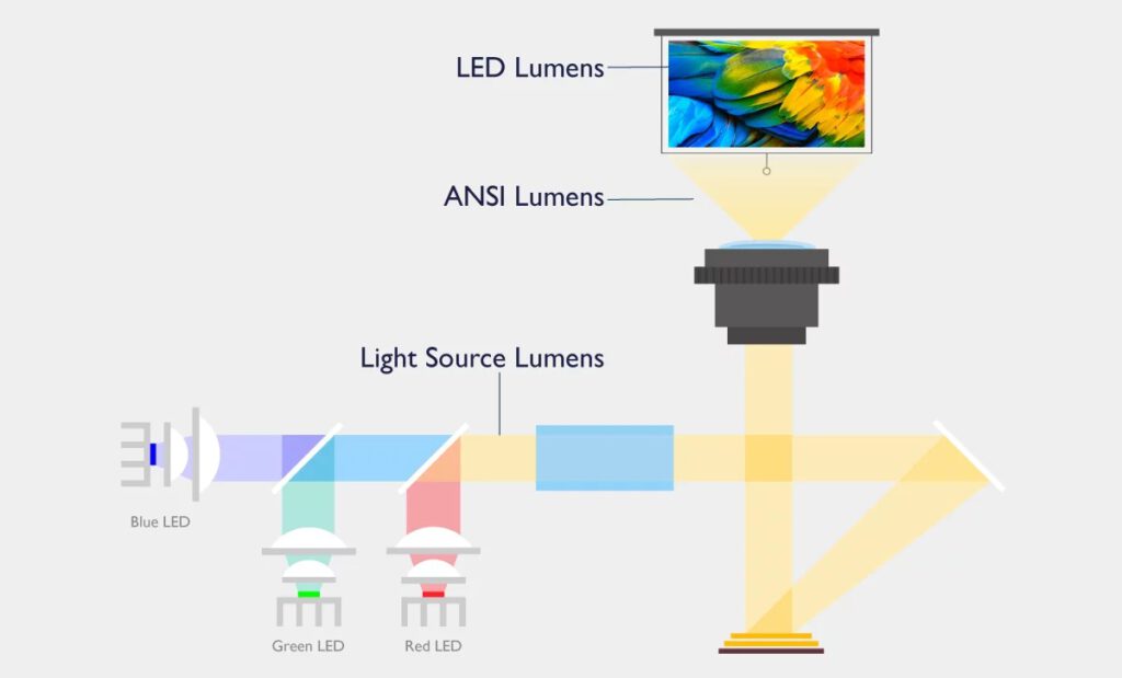 ในตลาดส่วนมากมีการวัดอยู่ 3 ค่า คือ ANSI lumens, Light Source lumens และ LED lumens ทั้งหมดเป็นการวัดค่าความสว่างของแสง แต่วัดคนละตำแหน่ง และมีตัวแปรไม่เหมือนกัน